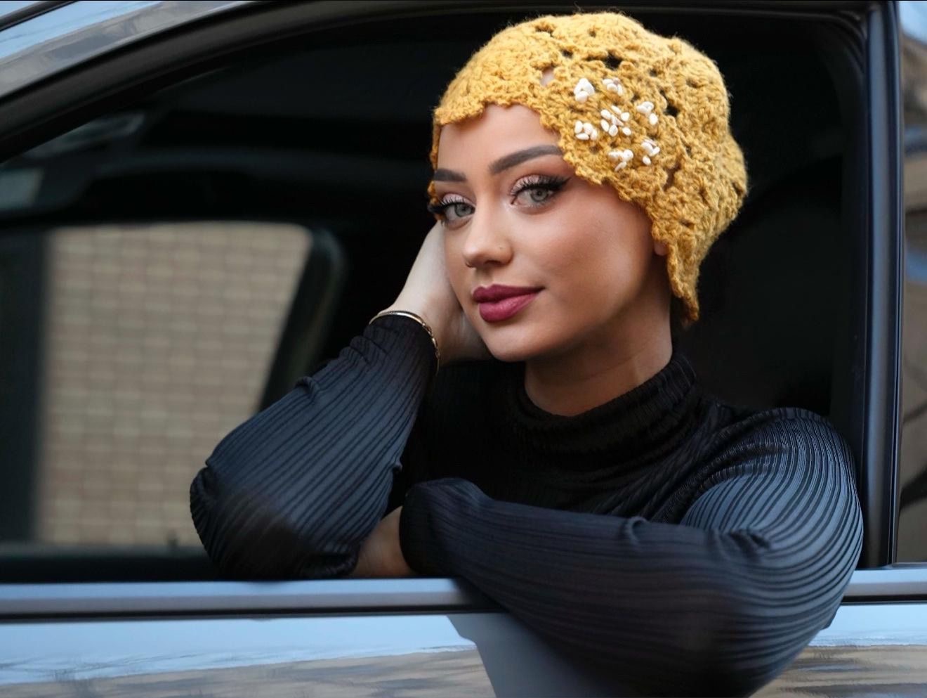 Handmade Knitted Healing Hat is made with 100%wool and healing stones on the side.